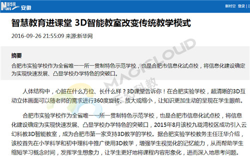 3D智能教室 讓課堂呈現不一樣的精彩-轉載自人民網